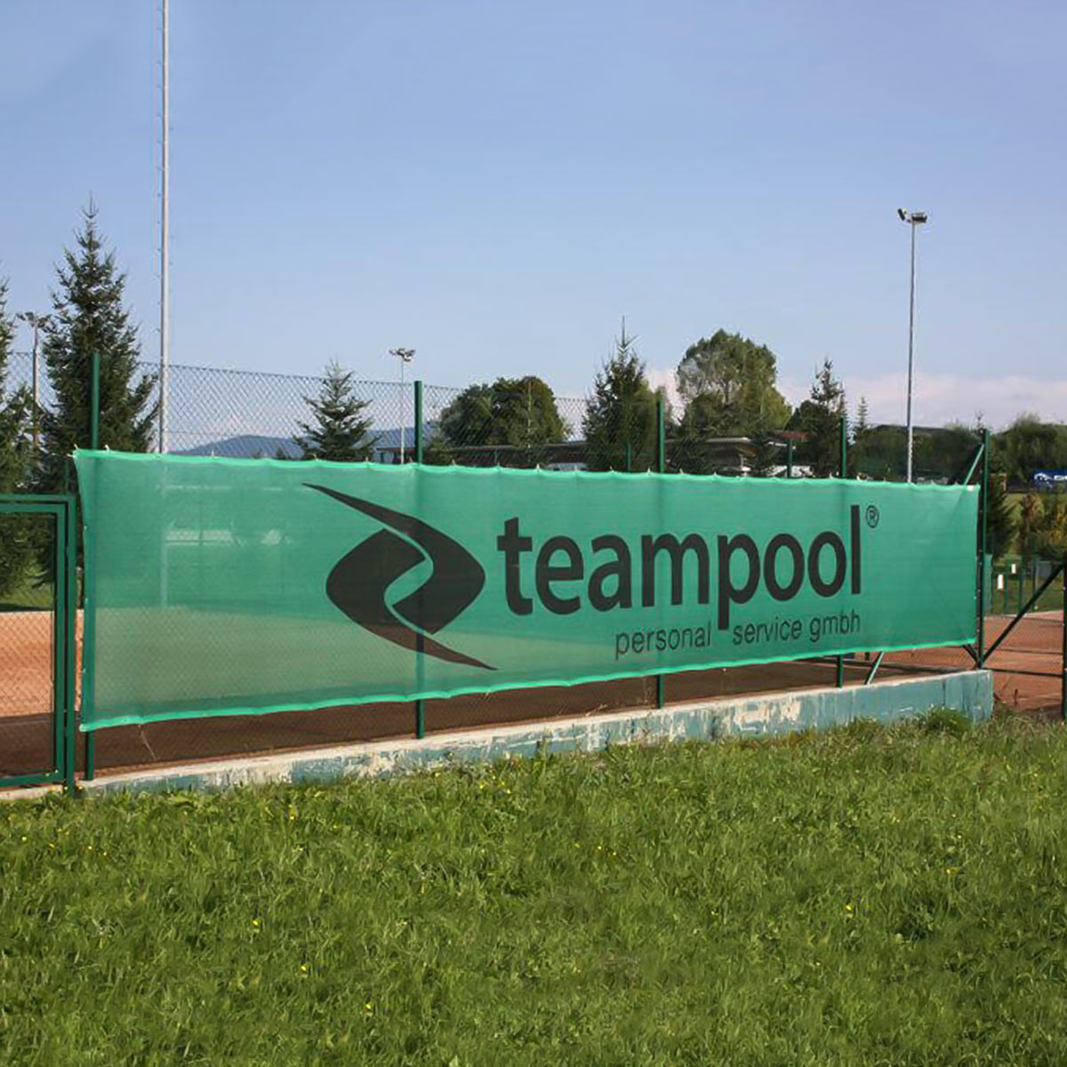 Diese universelle Tennisblende zeichnet sich durch eine sehr hohe Qualität aus und ist speziell im Randbereich nochmals mit einem Einlegeband verstärkt, um den Ösen zusätzlichen Schutz gegen einen eventuellen Ausriss zu gewähren. Weiters ist sie durch die hohe Maschendichte ein idealer Werbeträger für Ihre Werbebotschaft.
